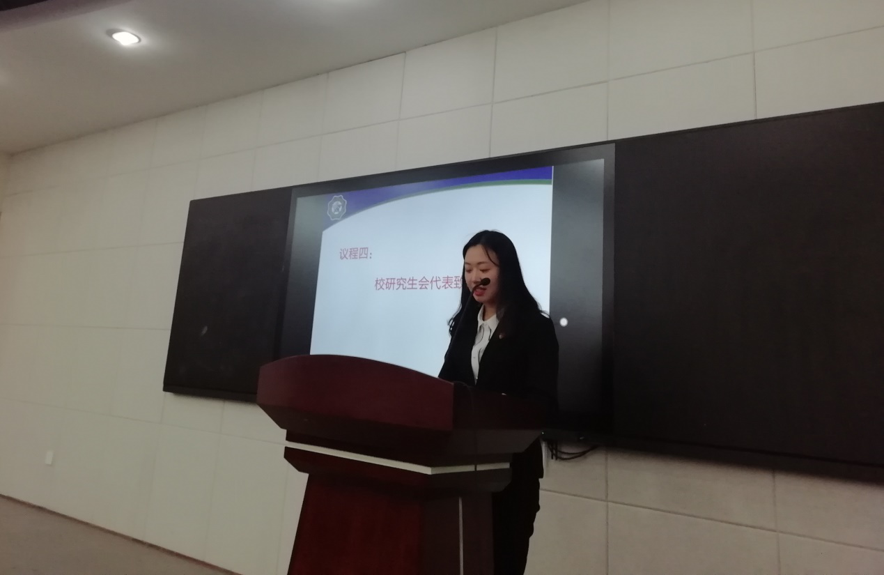 校研会代表杨一帆同学代表校研究生会发表讲话。她指出,成人影院 研究生会的各项工作都交出了满意的答卷,在思想引领、学术科研、社会实践等多个方面取得了优异的工作成绩。同时,她希望成人影院 研究生会紧跟时代步伐,进一步加强组织建设,不断创新工作思路,着力提高服务水平,努力开创研究生会工作的新局面。