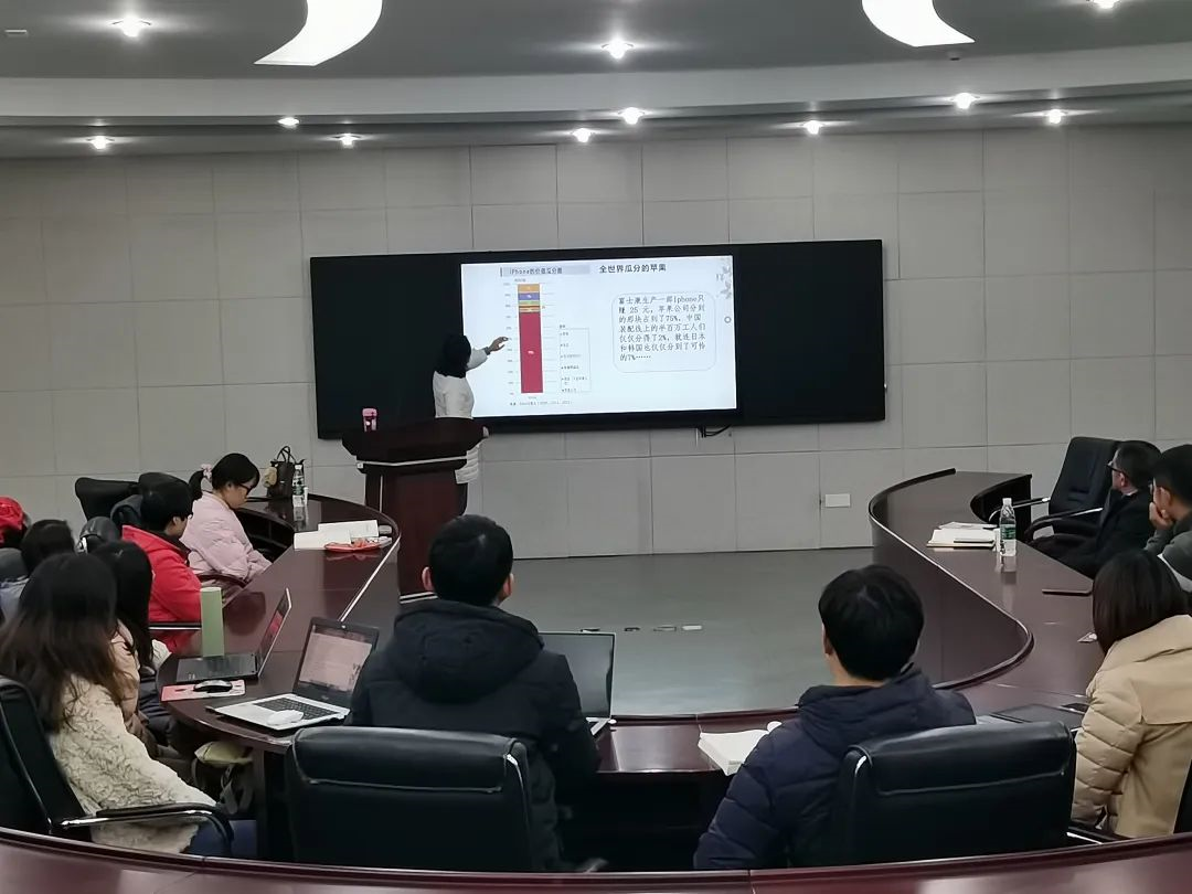 首先,戴老师为同学们普及全球价值链的涵义及作用、国民经济中间消耗的涵义。在戴老师的详细讲解下,同学们对全球经济链的嵌入位置问题有了更好的思考。随后,戴老师运用迈克尔·波特的价值链理论和微笑曲线理论,对企业间、企业内、产品内的分工问题进行了模拟分析,进而推广到对全球价值链的探究中。