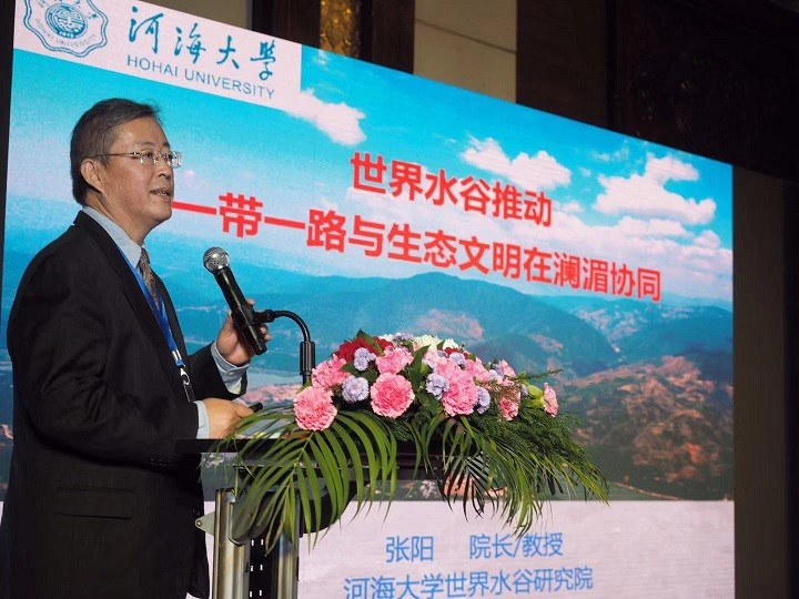 图 1 张阳教授在老挝万象举办的第四届“世界水谷”论坛上做主旨演讲