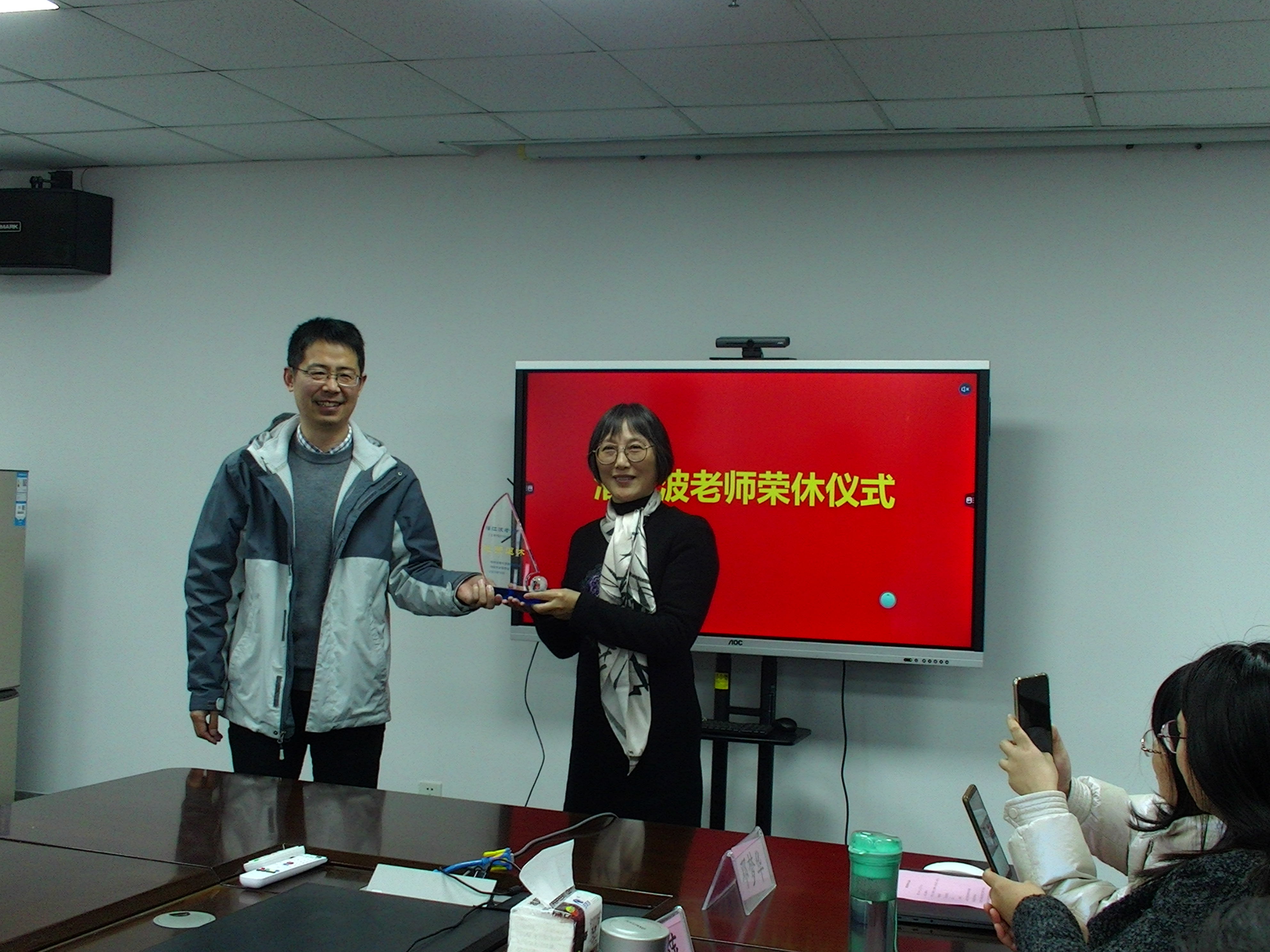 11月24日下午,成人影院 在常州校区举行了潘江波副教授光荣退休仪式,学院党委吴宝海书记、庞庆华常务副院长、梁伟副院长、管信系教师和青年教师代表参加仪式,赵光好副书记主持仪式。