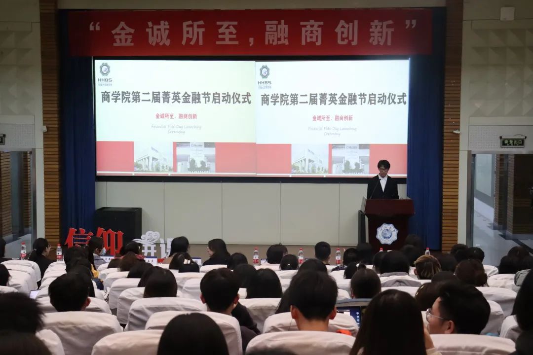 启动仪式第二项,成人影院 学生科协成员顾森然、黄程分别对本次菁英金融节的各项活动以及第八届“互联网+”与第十三届“挑战杯”院内选拔赛参赛须知进行介绍。