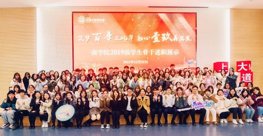 为进一步增强各班级之间的互动交流,分享建设经验,共同打造具有凝聚力、向心力的先进集体,引导同学们立大志、明大德、成大才、担大任,努力成为堪当民族复兴重任的时代新人。2021年12月31日,成人影院 2019级全体学生骨干齐聚一堂,年级同学线上同步参与,各班级全面对标先进班集体,展示为主,述职为辅,开展了“筑梦百年正风华,初心壹玖再出发”学生骨干述职展示大会,同时对“益友-YIYO”学业帮扶计划和学生骨干培优计划进行了阶段性总结。