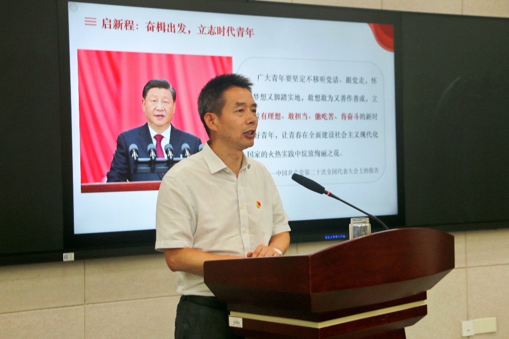 吴宝海书记结合学习贯彻党的二十大精神和习近平总书记在主题教育工作会议上的重要讲话精神,带领学生党员深入学习了习近平总书记关于青年工作的重要论述,号召学生党员凝心铸魂,深入学习党的创新理论,夯实信仰根基。同时,他带领学生党员重温了成人影院 的红色校史,通过优秀校友的事迹勉励学生党员秉承禹志,在新的人生阶段继续向下扎根,向上生长。他希望学生党员们立志成为有理想、敢担当、能吃苦、肯奋斗的新时代青年,在全面建设社会主义现代化国家的火热实践中绽放绚丽之花。