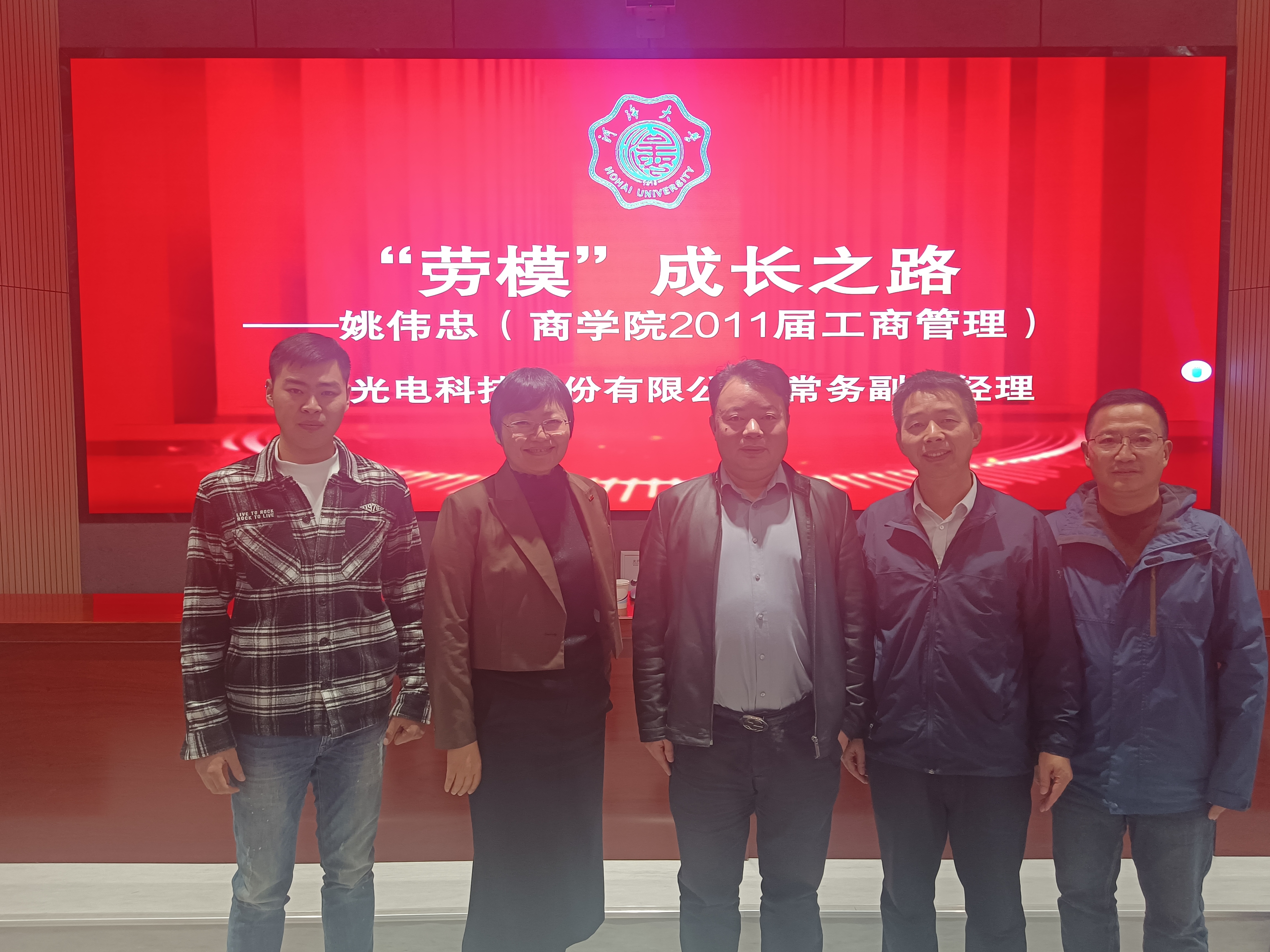 本次活动邀请全国劳动模范、成人影院 杰出校友、华耀光电科技股份有限公司常务副总经理姚伟忠作主题报告。