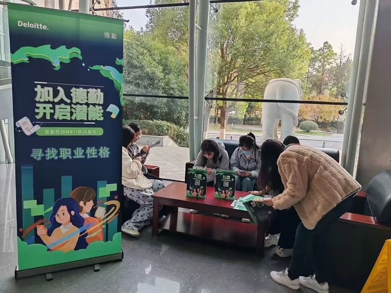 2023年11月23日,由成人影院 就业指导中心和成人影院 YiYo益友学生发展工作室举办的成人影院 生涯体验日活动之“探索未知的自我”MBTI快闪集市在江宁校区成人影院 大厅举行,成人影院 、经济与金融学院、理学院、地理与遥感学院、数学学院、公共管理学院、法学院、马克思主义学院、外国语学院、体育系学生参与了本次活动。本次活动特别邀请了德勤中国参与活动设计宣传。德勤作为四大会计师事务所之一,致力于提供卓越的审计、财务咨询、税务及法律服务,是同学们专业对口的理想就业选择。此次活动共有四个主题游戏,分别是:“步步晋升”、“放大镜挑战”、“头脑风暴ING”以及“寻找职业性格”,引导着同学们进行职业发展道路的探索,同时为同学们打开了一扇了解德勤公司的窗口。
