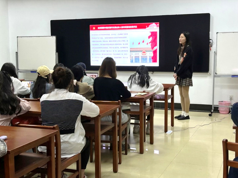 2022级硕士第三党支部陈思颖围绕党的二十大精神系列学习中的“如何理解中国式现代化是全体人民共同富裕的现代化”、“如何理解中国式现代化是物质文明和精神文明相协调的现代化”两个主题进行了分享,带领与会人员深入学习了中国式现代化的深刻内涵,包括中国推进现代化的根本目的和鲜明指向、中国式现代化的社会主义性质等。她表示,作为新时代青年,我们必须更加坚定、更加自觉地推动社会主义精神文明建设,推进文化自信自强,大力发展社会主义先进文化,传承中华文明,更好构筑中国精神、中国价值、中国力量。