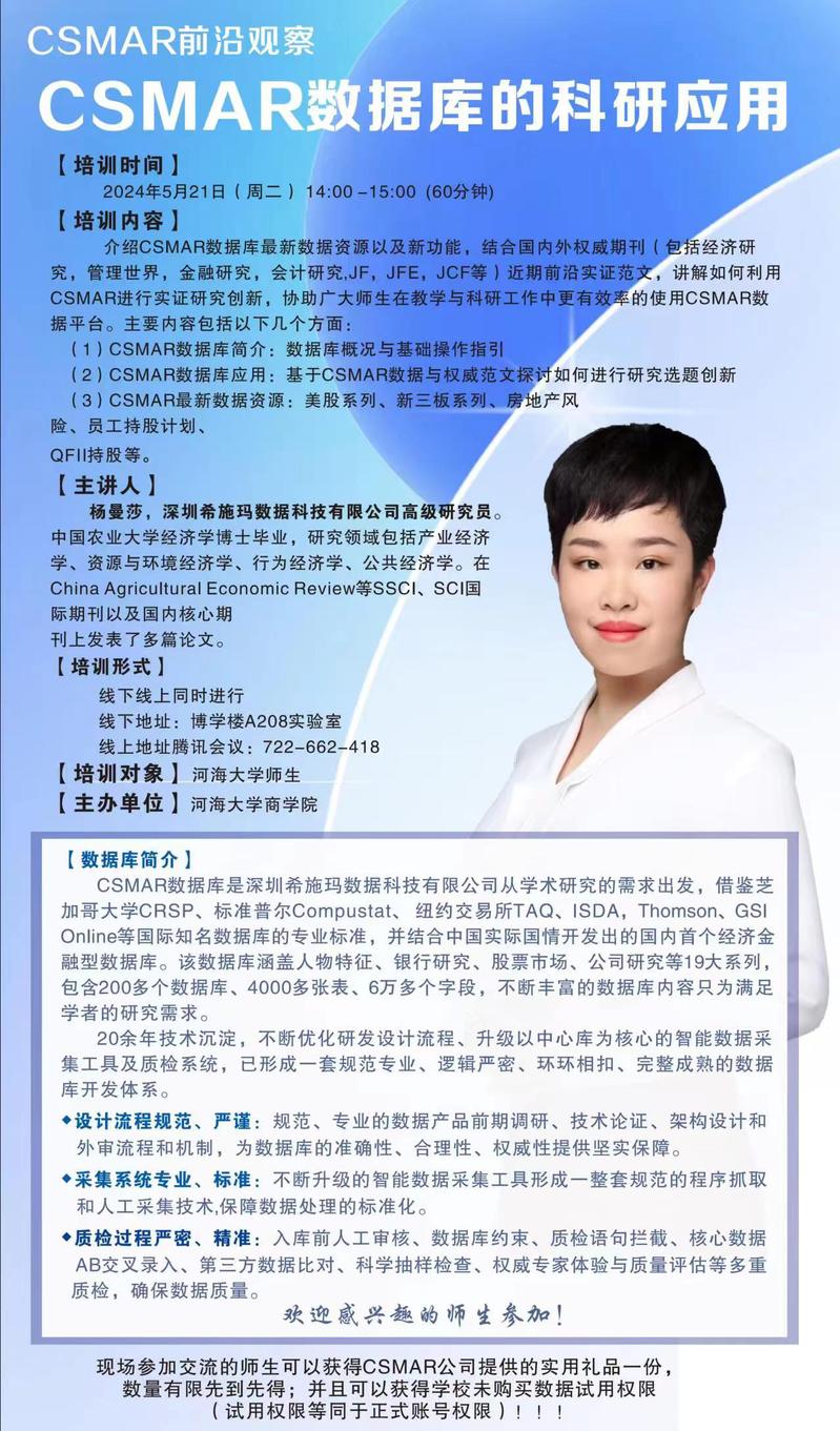 学术讲座通知:CSMAR数据库的科研应用