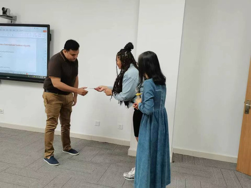 接着,刘老师深入解读了在与不同国家开展商业合作,特别是与中国进行经贸往来时需要注意的细节。她认为熟练掌握中文以及了解中国的商业文化是与中国人进行有效交流的关键。此外,同学们还需熟悉中国的会面礼仪,学会恰当地表达同意、拒绝等意愿。通过分享,同学们更加清楚认识到商业交流蕴含的奥秘,明白了语言的掌握、表达的方式、文化的了解都在跨国合作中起着至关重要的作用。