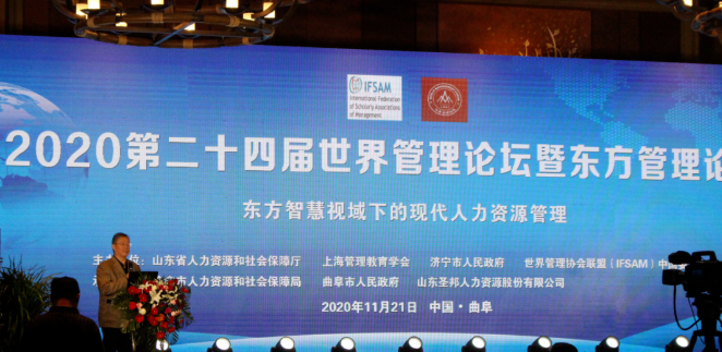 2020年11月21日,第二十四届世界管理论坛暨东方管理论坛在山东曲阜成功举办。本届论坛由山东省人力资源和社会保障厅、上海管理教育学会、世界管理协会(IFSAM)联盟、中国委员会和济宁市人民政府等主办,围绕“东方智慧视域下的现代管理”的主题,以东方管理的视域积极探索现代人力资源管理中的实践与创新。