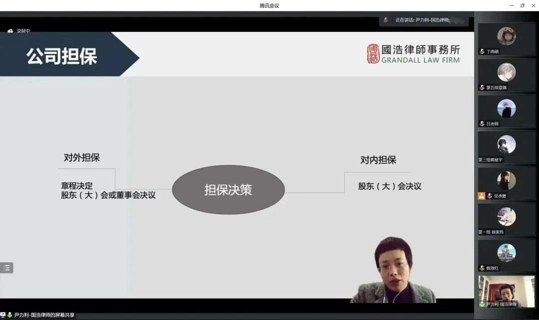 最后尹律师又为营员们讲授了公司章程、股权转让和公司担保等方面知识。并特别用之前的纠纷案例强调了公司章程对于一个公司的重要性,同时叮嘱各位营员在公司担保方面,无论是对内担保还是对外担保一定要多人决策、多人担保,以免出现矛盾纠纷。