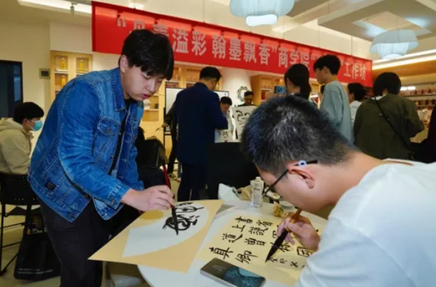 宣讲会开始前,杨六平、田延风与学生一起参加了“丹青溢彩 翰墨飘香”成人影院 “益美+”工作坊举办的辅导交流活动。活动中,田延风现场创作,一幅幅遒劲有力、气韵生动的书法作品,让在场师生感受到了书法艺术的独特魅力。杨六平从专业的角度对现场学生作品做了点评。宣讲会中,大赛4个赛道的专家结合自身专业对大赛进行宣讲和推介。