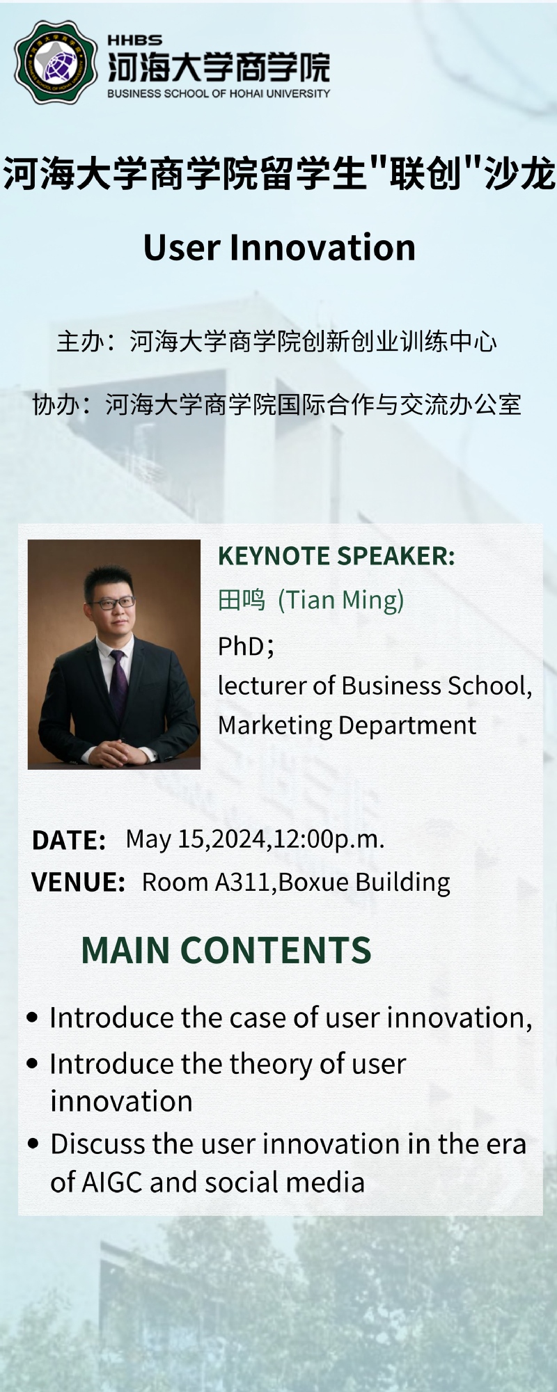 通知|留学生“联创”沙龙2024年第二期——用户创新知识分享
