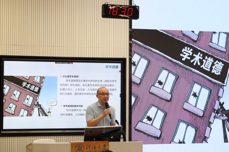 副院长张可教授为2024级新生开展了学术道德及学术诚信教育,向同学们介绍了学术不端的界定范围,在如何预防学术不端行为方面向大家做出谆谆教导,勉励各位新同学潜心科研,同时守住科研底线,砥砺前行。