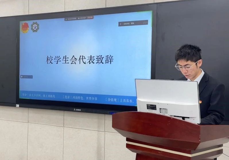 大会开始,校学生会主席团成员孙昊同学代表校学生会为本次大会致辞。他指出,成人影院 学生会积极举办丰富多彩的系列活动,以卓越的成绩向学院和学校交出了一份精彩的答卷。荣誉和辉煌属于过去,前行之路任重而道远,更应不忘初心、牢记使命,奋力书写成人影院 学生会的光荣与梦想。为此,他提出三点心得体会:一是筑牢信念基石,涵养家国情怀,练就过硬本领,勇担时代重任;二是搭建温暖桥梁,延续服务之光,用心沟通,用情奉献;三是加强改革创新,勇立时代潮头,增强学院品牌影响力与打造创新性项目齐头并进。最后,孙昊同学也对各位代表提出了期望与呼吁,希望新一届学生会聚焦主业服务同学,锐意改革、勇于担当、敢于创新,让青春在全面建设社会主义现代化强国的伟大实践中绽放绚丽之花。