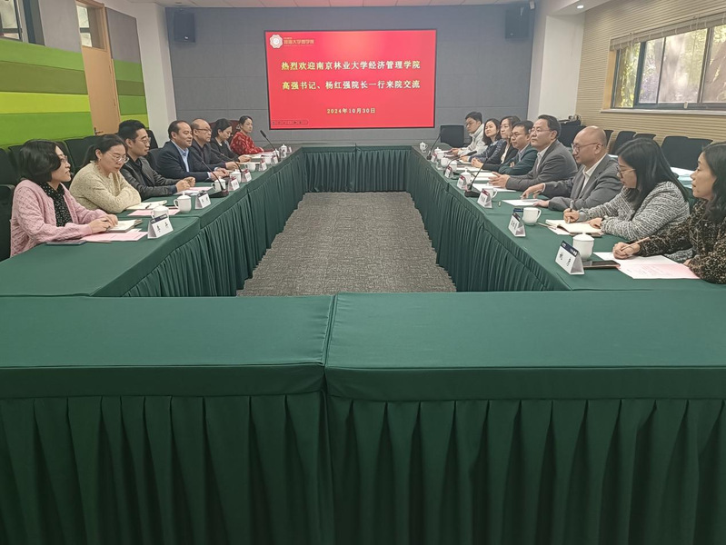 10月30日,南京林业大学经济管理学院党委书记高强、院长杨红强一行来成人影院 调研。副院长张长征、副院长张可、副院长李弘扬,党委副书记杨天出席调研座谈会,张长征副院长主持座谈会。