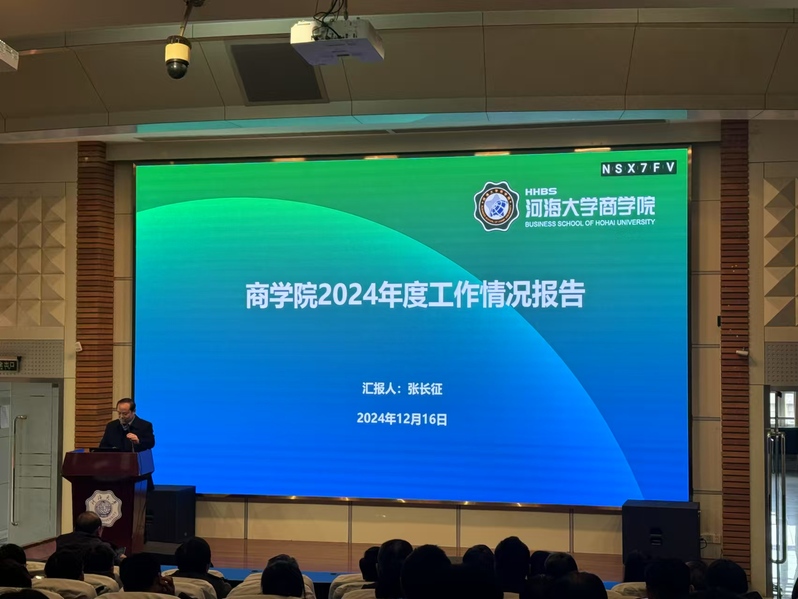 张长征副院长首先代表学院进行2024年度工作汇报。2024年,成人影院 以学科建设为龙头,以认证为抓手持续加强学院内涵建设和质量提升。重点从党建与思想政治工作、党风廉政建设工作、学科建设、师资队伍建设、人才培养、科学研究、社会服务、国际合作交流、国际认证、案例与课程开发、职业发展与就业服务、创新创业创意、国内合作发展、实验室与平台建设、内部治理等十四个方面介绍了年度工作开展情况。并在会上公开学院学科建设经费、党建工作经费、工会经费等使用情况。