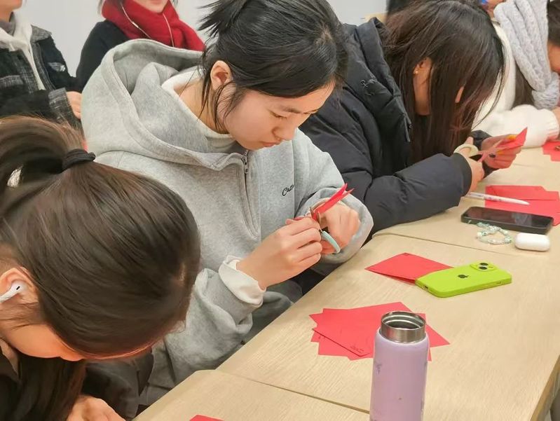 动手操作环节,同学们拿起剪刀和纸张,将自己的智慧和创意融入作品创作,逐渐掌握了剪纸的基本技巧,用心制作属于自己的剪纸作品。在剪裁的过程中,同学们也遇到了不少挑战,有的线条过于复杂,需要更加精细的操作;有的图案需要多次折叠和剪裁,才能呈现出最终的效果。同学们互相帮助,通力合作,沉浸式感受着中华优秀传统文化的博大精深。