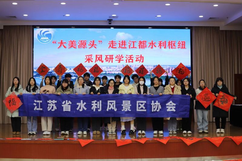 江淮明珠,大美江都。2025年1月10日,由江都水利工程管理处主办、江苏省水利风景区协会和成人影院 承办的“大美江都”采风研学和迎新春写春联活动在江都水利工程管理处拉开帷幕。江苏省文联诗书画家、国家一级美术师蒋义海老师,中国美术家协会会员、江苏省知名书画家刘宪老师,江都水利枢纽工程管理处王雪芳主任、江都水利工程水情教育中心主任颜蔚女士、南京明语堂信息科技有限公司蒋文杰先生出席本次活动,成人影院 院长助理李婕老师、团委书记陈璐老师、2024级本科生辅导员赵晨洁老师、研究生辅导员张婧老师和成人影院 美育工作室30余名学生赴江都水利枢纽参加活动。