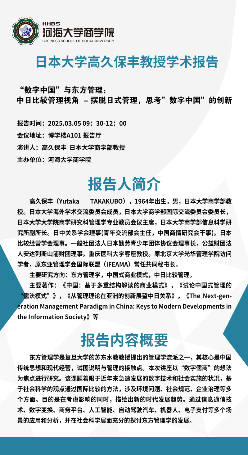 学术讲座通知:“数字中国”与东方管理:中日比较管理视角 - 摆脱日式管理,思考”数字中国”的创新
