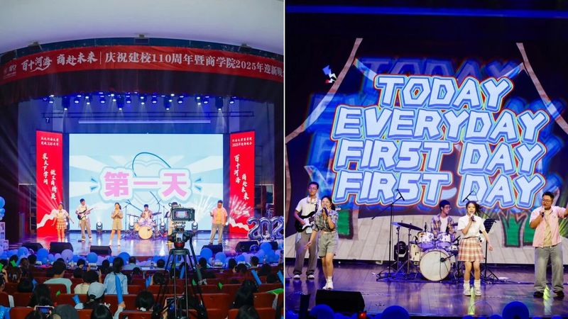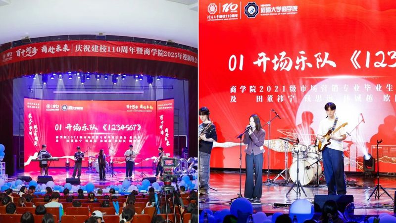 晚会分为“入海·涓流汇聚”、“激荡·奋楫逐光”、“奔涌·青春华章” 三个篇章,青春汇聚、点燃梦想,共同“商”赴新同学们与百十河海的青春华章!