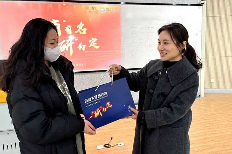 近日,成人影院 “榜‘商’有名,一‘研’为定”考研学生慰问暨冲刺动员活动在江宁、常州两校区顺利开展。学院党委书记陈杰,党委副书记杨天,辅导员魏俊美、伏方霓,以及学院2026届考研学生共同参加活动。