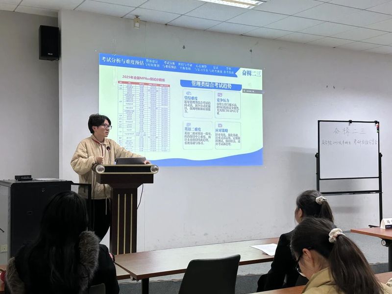 为进一步落实立德树人根本任务,发挥朋辈帮扶和引领作用,助力学生明晰未来生涯方向,科学规划升学深造,成人影院 2023级本科生分别于12月10日、12月18日在博学楼辅楼A103、A104开展“商途向远,生涯绘梦”升学经验分享会。两场经验分享会邀请到了李梅秀、林佳欣、邱菁秀、浩铭、于博雅、卢玥、雷舒7位2021、2022级考研、推免成功的同学和2021届毕业生叶勇同学进行分享。活动由2023级本科生辅导员周子芮老师主持。