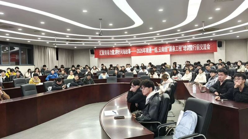 为助力各团队高质量开展“源泉工程”寒假招生宣讲社会实践,学院在博学楼A100顺利举办“汇聚青春力量,讲好河海故事”——2026年南通一组、云南组“源泉工程”团队培训暨行前交流会。成人影院 团委负责人陈鹏老师、南通一组招生组魏俊美老师、云南招生组张婧老师、2023级辅导员周子芮老师与相关团队负责人及主要成员参加活动。