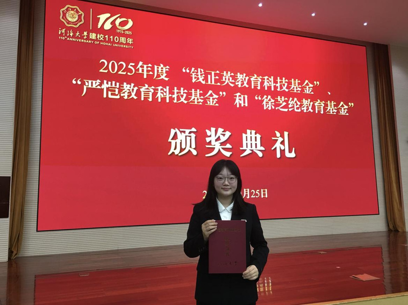 初入河海,张子鹤便以积极主动的姿态投入新的学习旅程。她始终保持着良好的学习习惯,对于不懂的知识,她从不回避,而是主动去问老师、与同学讨论,直到完全掌握为止。正是这种对学习的热爱与思考,让她在知识的海洋中不断探索。也正因如此,她连续三年专业排名第一,累计绩点达4.95/5。除了专业课程外,她也十分重视语言能力的培养,通过不懈的努力,分别以670分、616分的优异成绩通过了英语四六级考试。