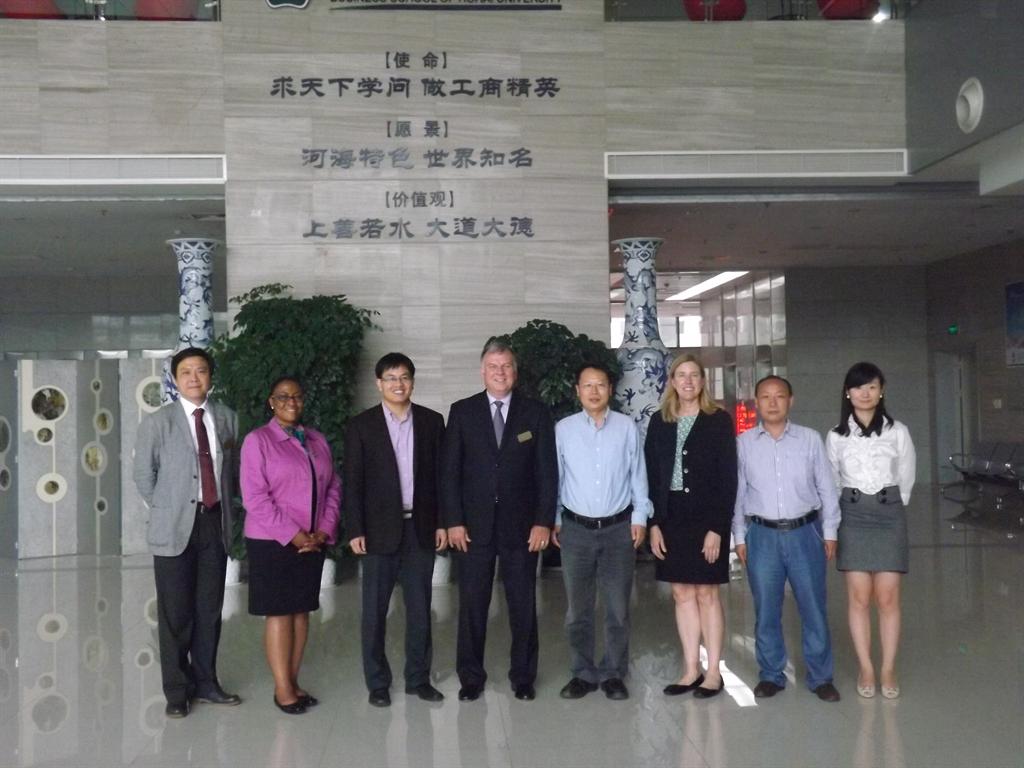 | Five delegates from University of Missouri-Kansas City, including Prof. Kevin Truman, director of International Division, Dr. Kami Thomas, associate dean of Henry W. Bloch School of Management, Ms. Kimberly Young, executive director of Executive Education, Mr. Wilson Ang, director of China and Asian programs in Henry W. Bloch School of Management, and Mr. Jun Zhao, associate director of China and Asian programs in Henry W. Bloch School of Management visited Business School of Hohai University on May 31th. Prof. Zhang Jisheng, associate director of International Cooperation Division and Prof. Huang Dechun, assistant Dean of Business School of Hohai University, met them in meeting room 301. Professor Huang Dechun first briefly introduced to the guests the basic information of our school, as well as the recent development of Hohai University in internationalization. Then, two sides fully exchanged ideas and discussed about faculty and student exchange, and research cooperation programs. Finally, broad consensus has been reached. University of Missouri-Kansas City was built in 1929, and it joined the education system of Missouri University in 1963. In the field of innovation management research, this university ranks first in the world. The career education standard of UMKC for undergraduate and postgraduate students ranks the top twenty in US. ![]() |