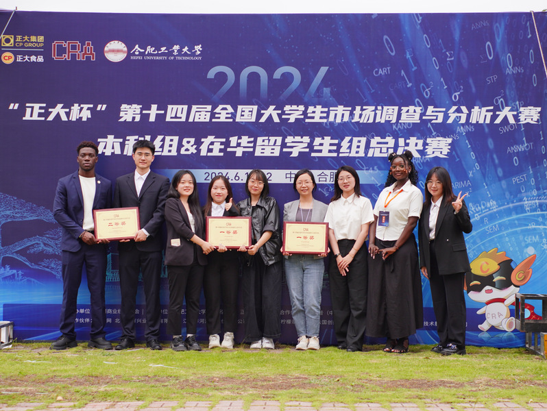 After multiple rounds of competition including individual knowledge competition, team practice competition, provincial competition, and national competition, our undergraduate students including Xinyu, Zhang Zemei, and Rong Siling (international students) won the first prize in the final of the 14th National College Student Market Research and Analysis Competition for International Students in China for their work Youth, Fresh Vitality, and Promotion Positive - Research on Lotus Shopping Platform Based on Contemporary College Students' Online Promotion Preferences, as well as Tang Xin, Yang Chuchu, and Li Biyu (international students)'s work Water Nourishing Z Rhyme, Mineral Wave Hearts - Research on Marketing Strategies for Generation Z Young People as a Natural Mineral Water Brand; The work of undergraduate students Zhang Yaowei and Ye En (international students), titled Strong Aroma, Elegant Charm, and Rich Integration - Digital Marketing Market Research of Instant Coffee, won the second prize in the finals of the International Student Group in China; The works of undergraduate students Wang Yiming, Liu Xinyu, Dai Yezi, Peng Ziyu, and Cheng Yexin, titled People in the Grass and Trees, Times Change Their Face - A Survey of Contemporary College Students' Demand for Ready made Tea Drinks, and the works of undergraduate students Ding Ziyi, Xiong Binru, Xu Wanqing, Li Jiaying, and Sun Yuhuan, titled Daily Coffee, You Can't Have Coffee - How Coffee Brands Effectively Interact with Consumers, won the third prize in the undergraduate group of the national finals. In addition, other undergraduate teams from our college have also won 4 first prizes, 2 second prizes, and 1 third prize in the Jiangsu competition area. Several teachers from the Business School, including Xu Juanjuan, Yu Feifei, Zhang Yu, Lv Suyu, Wang Long, Xu Rui, Shi Guoliang, and Wang Xiaoying, actively participated in the competition guidance work.