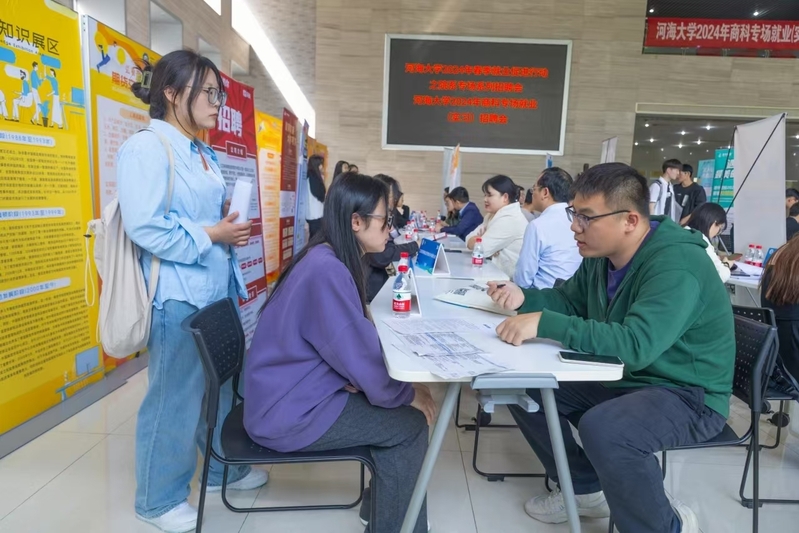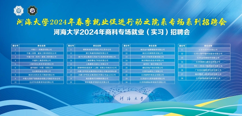 In order to thoroughly study and implement the spirit of the 20th National Congress of the Communist Party of China, implement the spirit of the important instructions of the General Secretary Xi Jinping and the decision-making and deployment of the Party Central Committee and the State Council on the employment and entrepreneurship of college graduates, and further broaden the employment channels of graduates, the School of Business and the School of Economics and Finance actively responded to the special job fair of the departments of Hohai University's 2024 spring employment promotion action, and actively connected with state-owned enterprises, public institutions, and large and medium-sized private enterprises. On April 15, 38 family units including Hongye Futures held the 2024 Hohai University Business Special Employment (Internship) Job Fair in the lobby of Boxue Building, providing more than 600 employment (internship) positions for graduates, covering construction, finance, manufacturing, Internet and other industries.